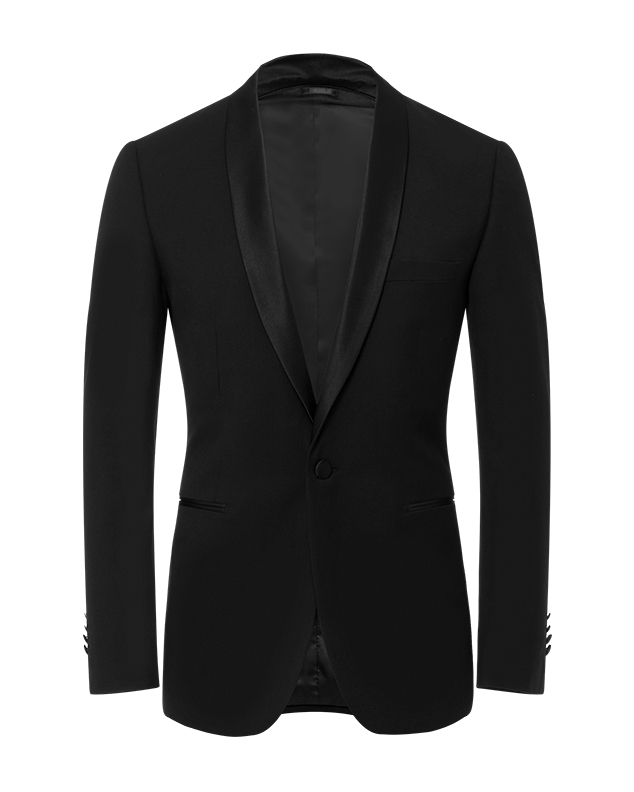 - Black single-breasted shawl lapel tuxedo jacket